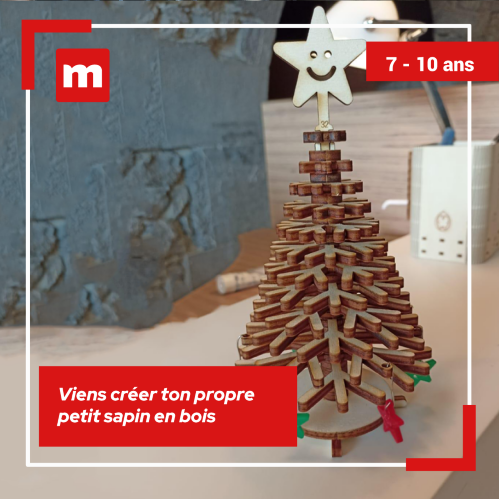 L'esprit de Noël approche ! Viens au Fab Lab créer ton propre sapin décoratif en bois et une carte de vœux personnalisée pour célébrer la saison hivernale.