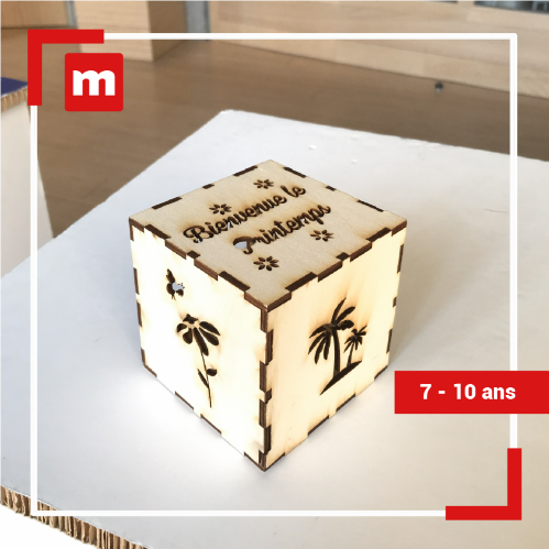 Tu veux une décoration originale pour ta maison ? Participe à cet atelier pour fabriquer ta propre lampe en bois avec l'aide de la découpeuse laser. Laisse parler ta créativité pour illuminer ton espace. Avec nos animateurs, tu apprendras à assembler les différentes parties de ta lampe, à la personnaliser avec de la peinture ou des motifs, et à découvrir le fonctionnement de la découpeuse laser.